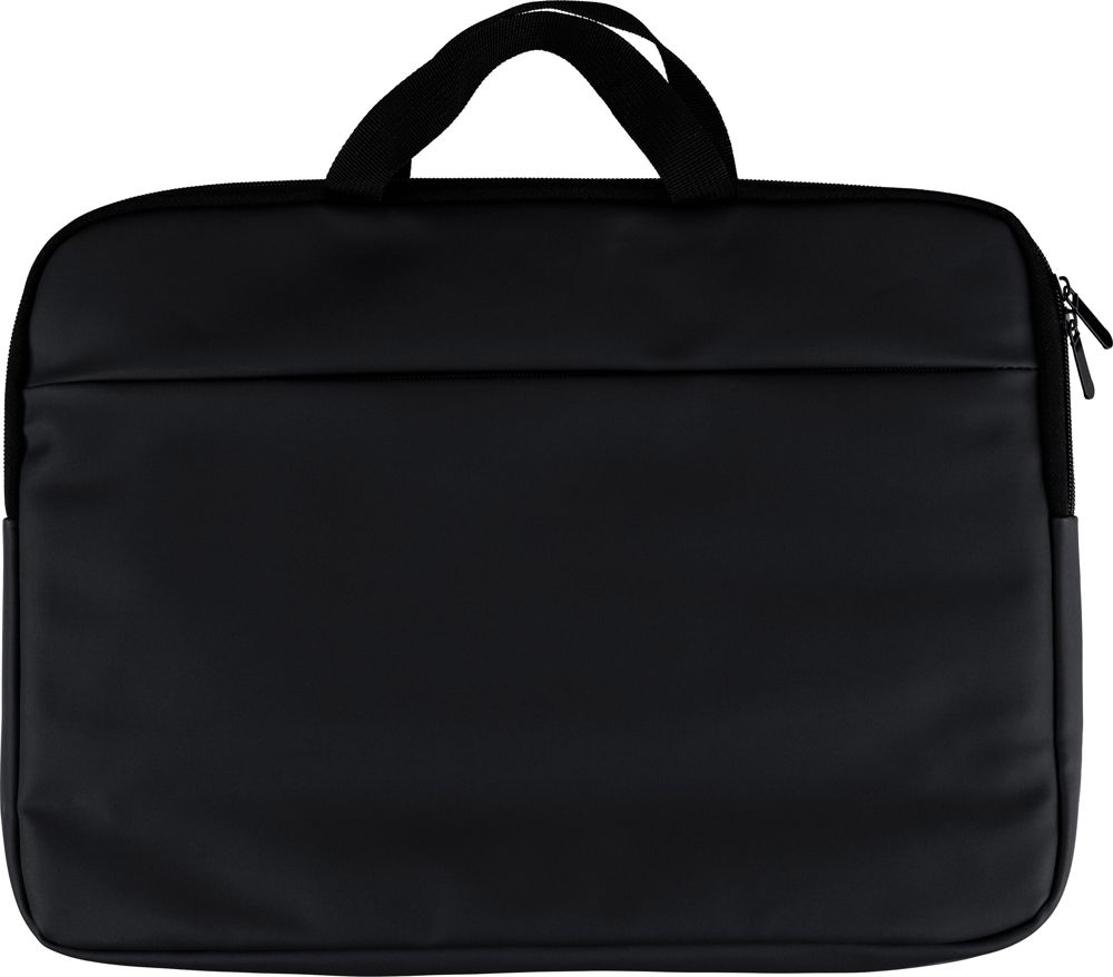 Laptoptas van gerecycled PU, geschikt voor laptops tot 15 inch, met 4 mm vulling en een voering van 210D gerecycled polyester. Voorzien van een voorvak met ritssluiting, een achtervak met klittenbandsluiting, twee korte draaghengsels en een verstelbare schouderriem. Inclusief een klein gerecycled logo in het binnenlabel.
