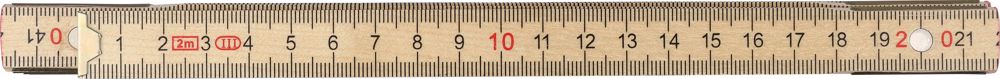 Opvouwbare duimstok van berkenhout met centimeterverdeling en een lengte van 2?meter. Bestaat uit 10 segmenten met stalen scharnieren voor duurzaamheid en stabiliteit, inclusief hoekvergrendeling voor veilig gebruik. Geleverd in een papieren hoes.