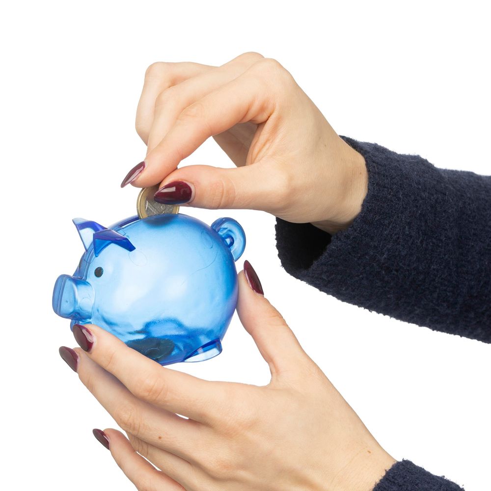 Spaarvarken van gerecycled PS-plastic in de vorm van een varken. Transparante uitvoering met...meer