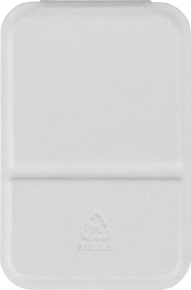 Spiegel met een opvouwbare hoes van gerecycled PU, ontworpen om rechtop te staan wanneer geopend. Pocketformaat van 70 x 11?cm, verkrijgbaar in zwart, wit en rood. Voorzien van een reliëflogo van gerecycled materiaal. Verpakt in een papieren zakje.