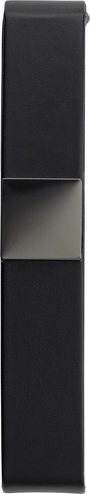 Luxe zwarte PU pen cassette, geschikt voor één pen, met een zwart glanzende metalen plaatje voor bedrukking (formaat 2,6 x 2,6 cm), een zwart fluwelen binnenzijde en magneet sluiting.