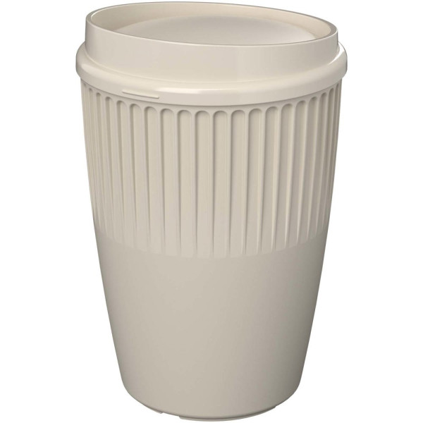 De Cirrus-beker van 350 ml bevat 50% Prevented Ocean Plastic – elke beker recycleert en hergebruikt 10 wegwerpplastic bekers die in Azië zijn ingezameld. De beker is een verfijnde en stijlvolle enkelwandige drinkbeker met isolerende ribbels voor een veilige en comfortabele grip. De beker is voorzien van een elegant klepdeksel met subtiel reliëf, waardoor de drinkopening gemakkelijk op de tast te vinden is. Zowel het deksel als de beker zijn gemaakt van volledig recyclebaar plastic. Geniet in alle comfort en stijl van je favoriete warme dranken.