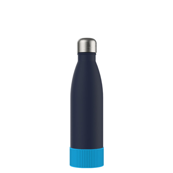 Voor warme of koude dranken, onze dubbelwandige roestvrijstalen fles met een trendy en functioneel design maakt indruk. Door de dubbele wand met vacuum blijven uw drankjes lang koud of warm. De drinkfles kan besteld worden met een edele matzwarte, met een witte poedercoating of natuurlijk met een zilverglans. De fles heeft een inhoud van 500 ml. Trek absoluut de aandacht met uw logo op de trendy drinkfles.