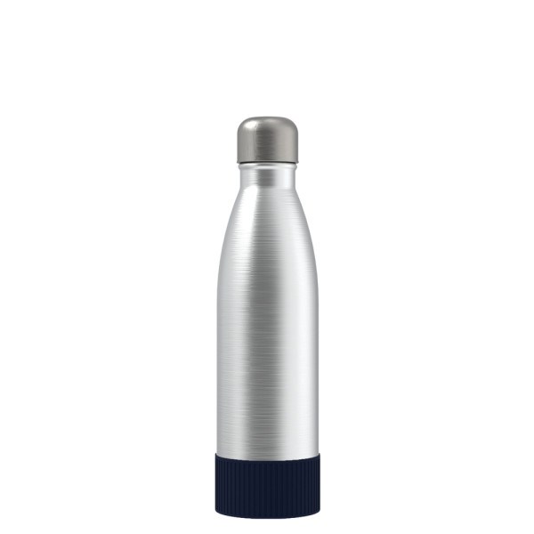 Voor warme of koude dranken, onze dubbelwandige roestvrijstalen fles met een trendy en functioneel design maakt indruk. Door de dubbele wand met vacuum blijven uw drankjes lang koud of warm. De drinkfles kan besteld worden met een edele matzwarte, met een witte poedercoating of natuurlijk met een zilverglans. De fles heeft een inhoud van 500 ml. Trek absoluut de aandacht met uw logo op de trendy drinkfles.