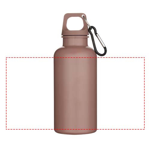 Altijd gehydrateerd blijven is mogelijk met deze duurzame maar toch lichte waterfles van 400 ml, gemaakt van RCS-gecertificeerd gerecycled PET. Het is de perfecte metgezel tijdens het sporten, op dagtrips of op kantoor. De enkelwandige Oregon-fles heeft een draaideksel en biedt voldoende ruimte om elk soort logo toe te voegen. Bevestig de meegeleverde karabijnhaak (niet geschikt om mee te klimmen) stevig aan een tas om verlies te voorkomen. Geproduceerd volgens het door EFSA goedgekeurde PET-recyclingproces.