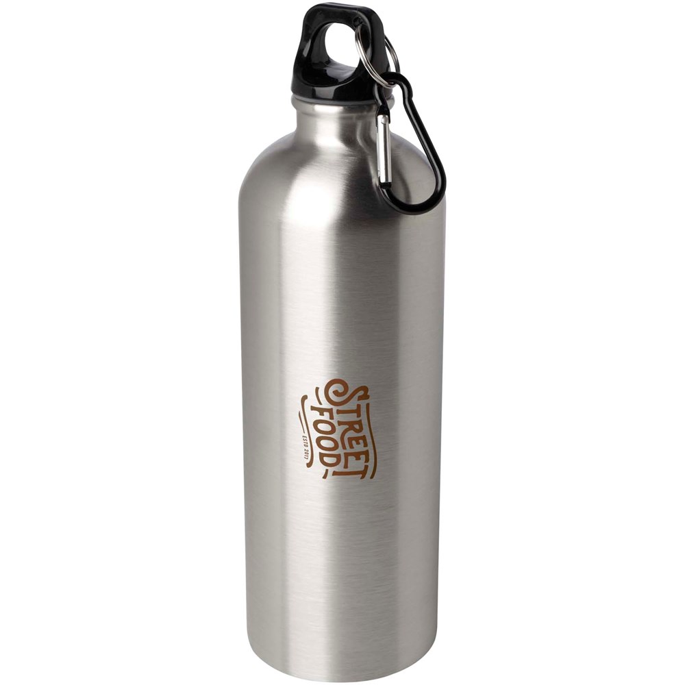 Blijf altijd gehydrateerd met deze duurzame maar lichtgewicht 750 ml waterfles van RCS-gecertificeerd gerecycled roestvrij staal. Het is de perfecte metgezel voor sport, daguitstapjes of voor gebruik op kantoor. De enkelwandige Oregon-fles heeft een draaideksel en biedt voldoende ruimte om elk soort logo toe te voegen. Klem de bevestigde karabijnhaak (niet geschikt om mee te klimmen) stevig vast aan een tas om deze niet te verliezen.