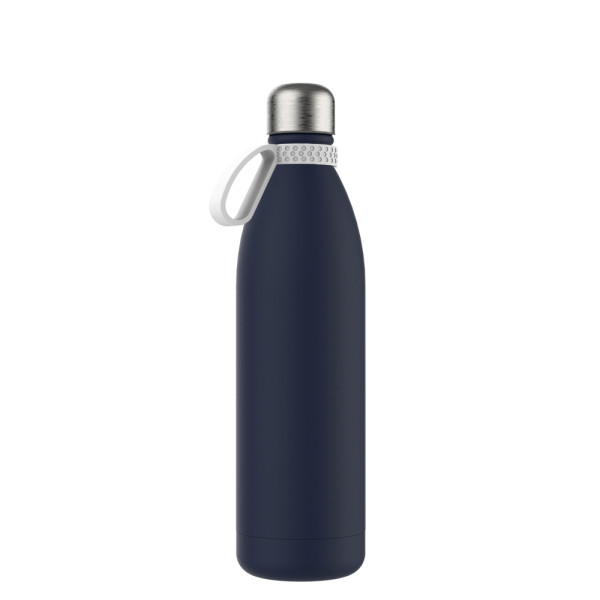 De dubbelwandige thermo drinkfles bevat 750 ml en is het grotere alternatief voor ons originele model. Deze houdt uw drankjes betrouwbaar warm of koud en maakt indruk met zijn grote, prominente drukoppervlak. Is verkrijgbaar met witte of zwarte poedercoating of in mat zilver roestvrij staal met anti-vingerprint coating. De roterende sluiting beschermt tegen lekken.
