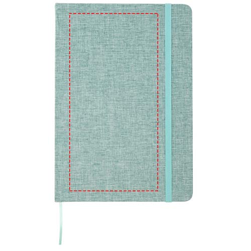 A5 notitieboek met harde kaft van gerecycled katoen met 80 gelinieerde vellen papier van 70 g/m². Het notitieboek heeft een elastische sluiting, een lint en afgeronde hoeken.