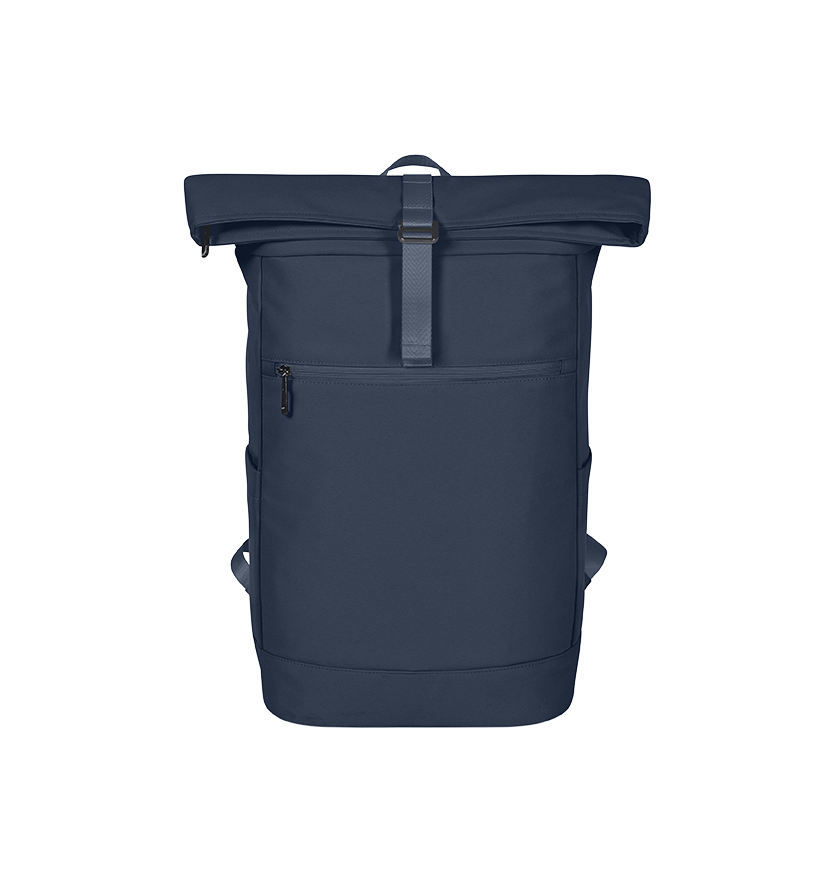 modieuze roll-top-rugzak; hoofdvak met ritssluiting met verstelbaar sluitsysteem; lusband op de flap; waardevolle metalen accessoires; gevoerd notebookvak; voorvak met ritssluiting; twee insteekvakken aan de zijkant; gevoerde bodem; gevoerd draagsysteem; bevestigingslus voor trolleystang aan de achterkant; handgreep