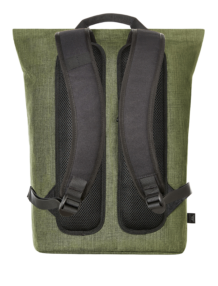 strakke, moderne rugzak; hoofdvak met ritssluiting met verstevigd notebookvak; rPET-buitenmateriaal; waardevolle, metalen accessoires; verstevigde bodem; sterk verstevigde achterkant met vak met blinde ritssluiting; in lengte verstelbare en verstevigde schouderriem met rubberen lussen om bijv. zonnebril aan te bevestigen; handgrepen