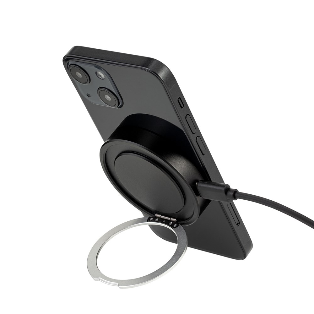 Deze 3-in-1 multifunctionele draadloze oplader biedt u optimaal laadcomfort, of u nu thuis, op kantoor, in een café, op het vliegveld of op het station bent. Met tot 15 watt voor compatibele apparaten en 3 watt voor Apple® Watch laadt hij uw apparaten uiterst efficiënt op. Het magnetische oplaadoppervlak biedt een veilige bevestiging voor apparaten die de MagSafe®-technologie ondersteunen. Klap de ring aan de achterkant uit en de oplader verandert in een handige telefoonstandaard.