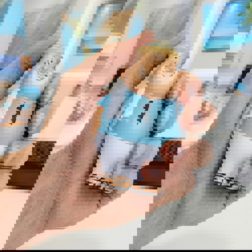 Squeezies® vacationist Bert® is a real globetrotter and already ensures anticipation and good mood when booking the trip. Bert® is cult and prefers to be in the middle of things instead of just being there. He spends the year relaxed with his hat, towel, sunglasses and camera. Quite charmingly, he thus provides important recreational breaks. Likeable gift item or funny promotional gift for travel agencies, hospitality industry and Co.