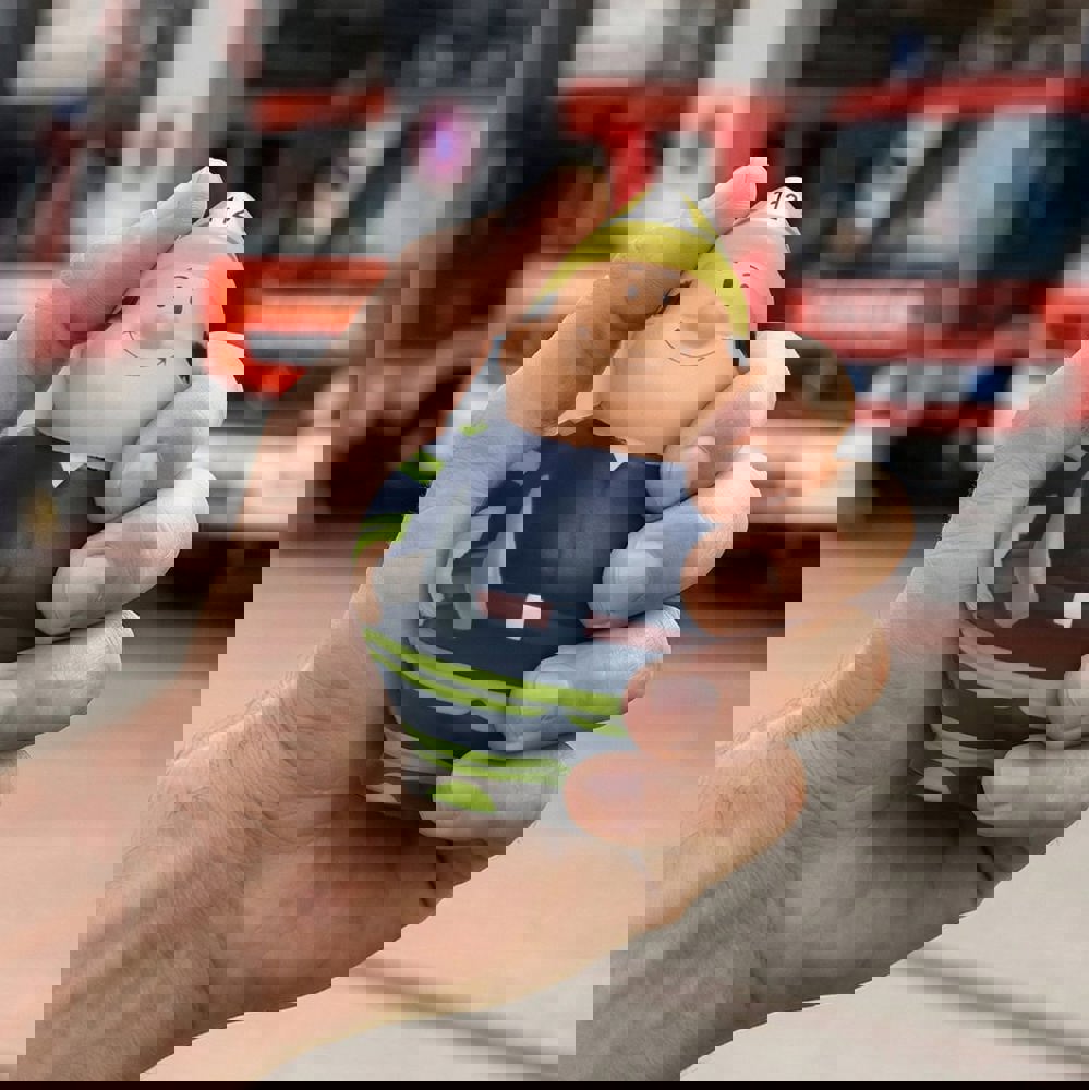 Bert® is there immediately when you need him - he doesn't scorch anything. Instead, he ignites enthusiasm when it comes to combating stress. With the axe in one hand and the hose in the other, the fire-brigade uniform and the helmet, stress has no chance. Simply squeeze fire fighter Bert® to reduce stress. Due to the material's properties, the product returns to its original shape.