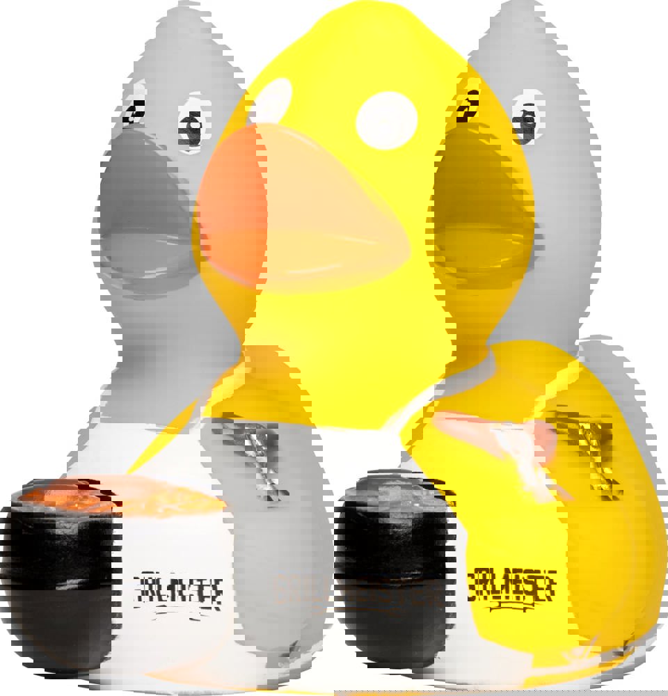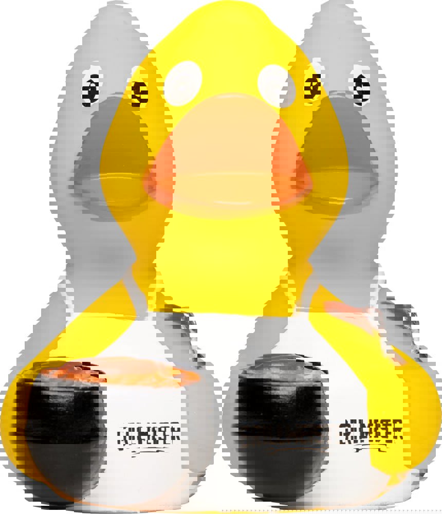Squeaky duck BBQ with slogan, multicoloured, one size