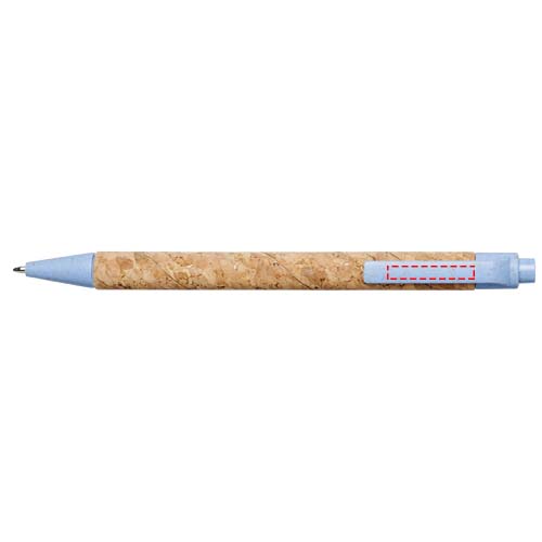 Eco friendly ballpoint pen with click action mechanism, with a barrel made of cork, and wheat straw trims that comes in a variety of colours. Wheat straw is left over stalk after wheat grains are harvested. This reduces the amount of plastic used, providing an Eco friendly alternative. The colour of the cork material may vary.