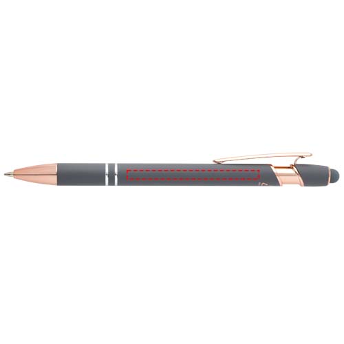 The Nanna ballpoint pen with rose gold finish has a barrel made of recycled aluminium with a touch stylus made of silicone. Recycled aluminium reduces the amount of waste in landfills and helps to conserve natural resources aiming to reduce greenhouse emissions. Ink colour: Blue. Writing length: 800 metres. Nib size: 1.0 mm.